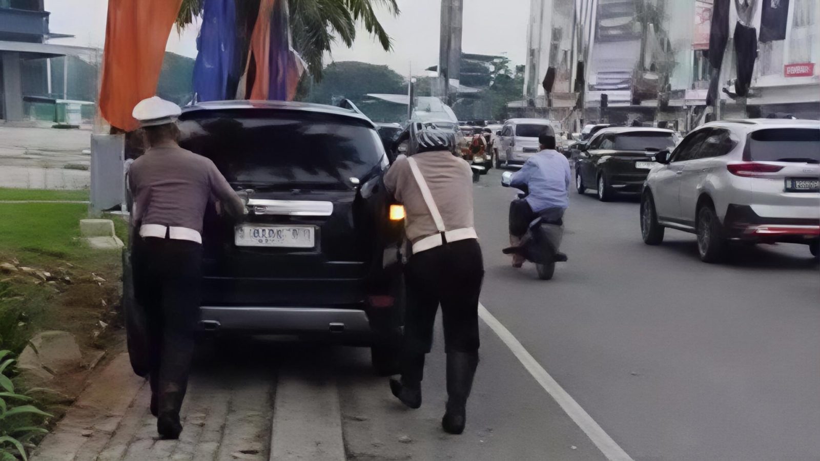 ​Tanpa menunggu lama, AKP Parwoto dan Aipda Nara Utama segera menepi dan bergotong royong mendorong mobil yang mengalami kendala teknis tersebut. Berkat kesigapan mereka, mobil berhasil dipindahkan ke area yang aman, dan arus lalu lintas yang sempat terhambat di kawasan Bundaran Piramid langsung terurai.