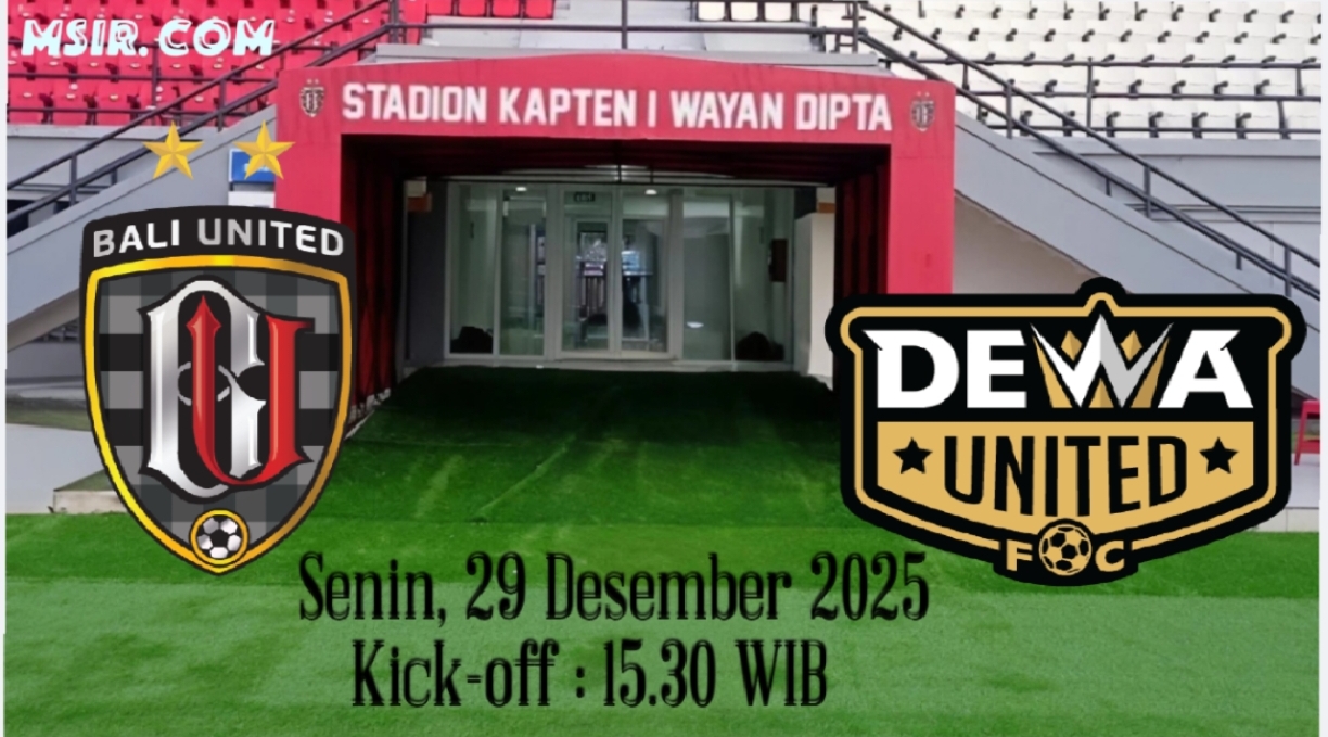 MSIR.COM, Kota Bekasi —Kompetisi BRI Super League 2025-2026 kembali memanas dengan digelarnya laga tunda pekan ke-8. Dewa United berjuluk Banten Warriors dijadwalkan bertandang ke markas Bali United di Stadion Kapten I Wayan Dipta, Gianyar, pada Senin 29/12/2025 Kick-off pukul 15.30 WIB duel ini disiarkan langsung oleh televisi nasional Indosiar.