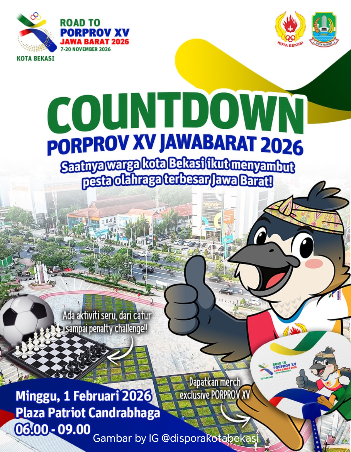 MSIR.COM, Kota Bekasi — Denyut nadi olahraga Jawa Barat mulai berpindah ke Kota Patriot. Menjelang pesta olahraga multi-event bergengsi, Pemerintah Kota Bekasi resmi memulai hitung mundur PORPROV XV Jawa Barat 2026. Acara peluncuran ini akan dipusatkan di Plaza Patriot Candrabhaga pada besok Minggu, 1 Februari 2026.