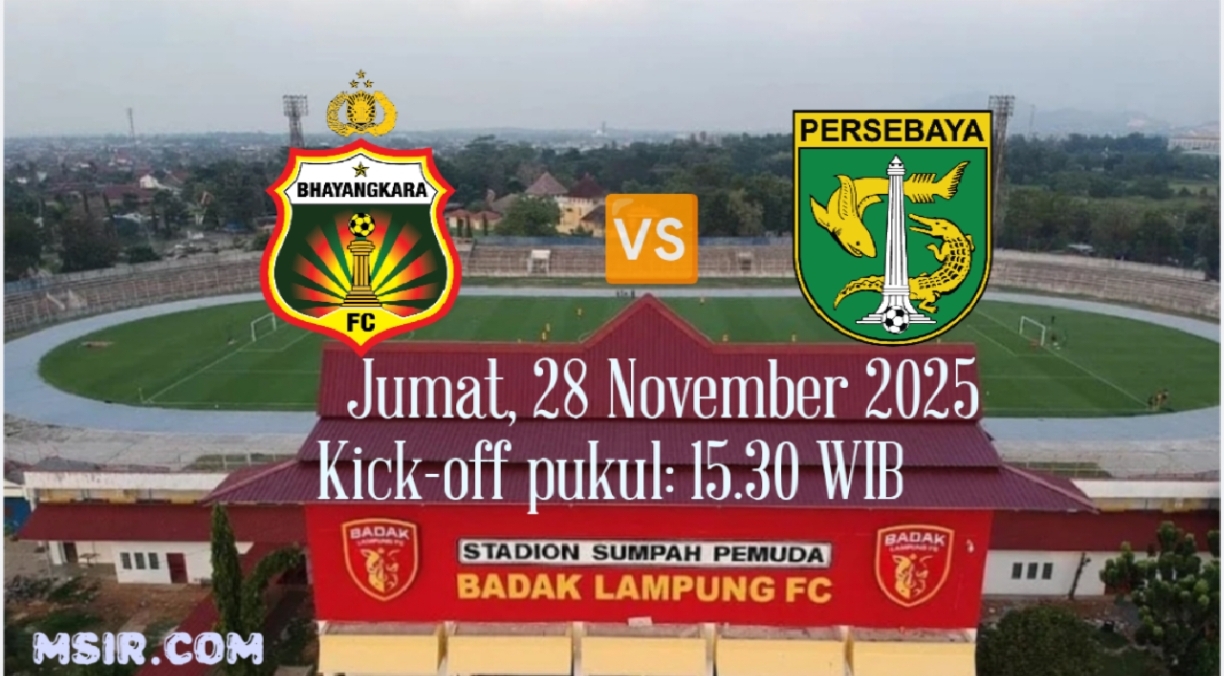 MSIR.COM, Kota Bekasi —Stadion Sumpah Pemuda, Jumat 28/11/2025 lanjutan BRI Super League 2025-2026 memasuki pekan ke-14, menyajikan duel menarik antara Bhayangkara FC dan Persebaya Surabaya. Pertandingan yang akan dimulai pukul 15.30 WIB ini bukan sekadar perebutan tiga poin, tetapi juga ajang reuni emosional dan pembuktian lini serang.