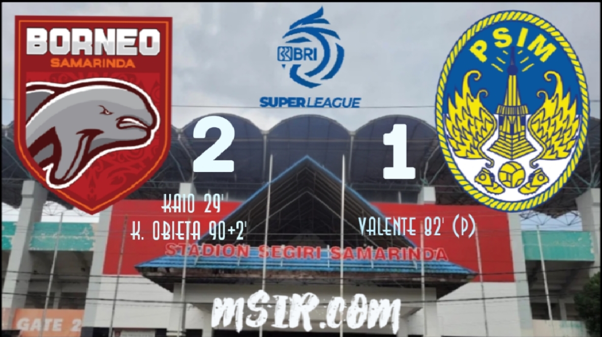 MSIR.COM, Kota Bekasi — Borneo FC Samarinda sukses mengamankan tiga poin krusial setelah menyudahi perlawanan sengit PSIM Jogja dengan skor 2-1 pada pekan ke-19 lanjutan BRI Super League 2025-2026. Bertanding di Stadion Segiri, Minggu sore 1/2/2026 laga ini disiarkan langsung oleh televisi nasional Indosiar, gol kemenangan “Pesut Etam” julukan Borneo FC lahir secara dramatis di penghujung laga.