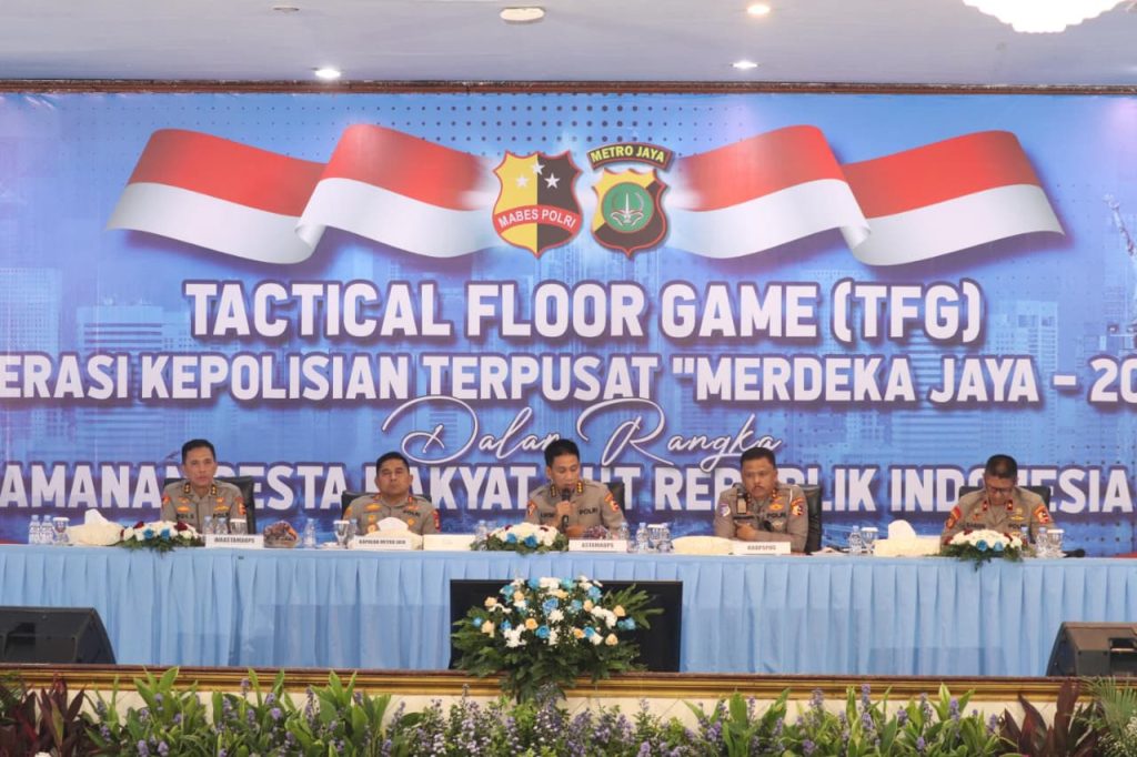 Jakarta, MSIR.COM — Menjelang perayaan Hari Ulang Tahun (HUT) ke-80 Kemerdekaan Republik Indonesia, Polda Metro Jaya menggelar latihan simulasi taktis yang dikenal dengan Tactical Floor Game (TFG). Berlangsung di Balai Pertemuan Metro Jaya, simulasi ini dirancang untuk memastikan kesiapan dan sinergi seluruh satuan pengamanan, termasuk Brimob Polda Metro Jaya, dalam menghadapi berbagai skenario saat perayaan berlangsung.