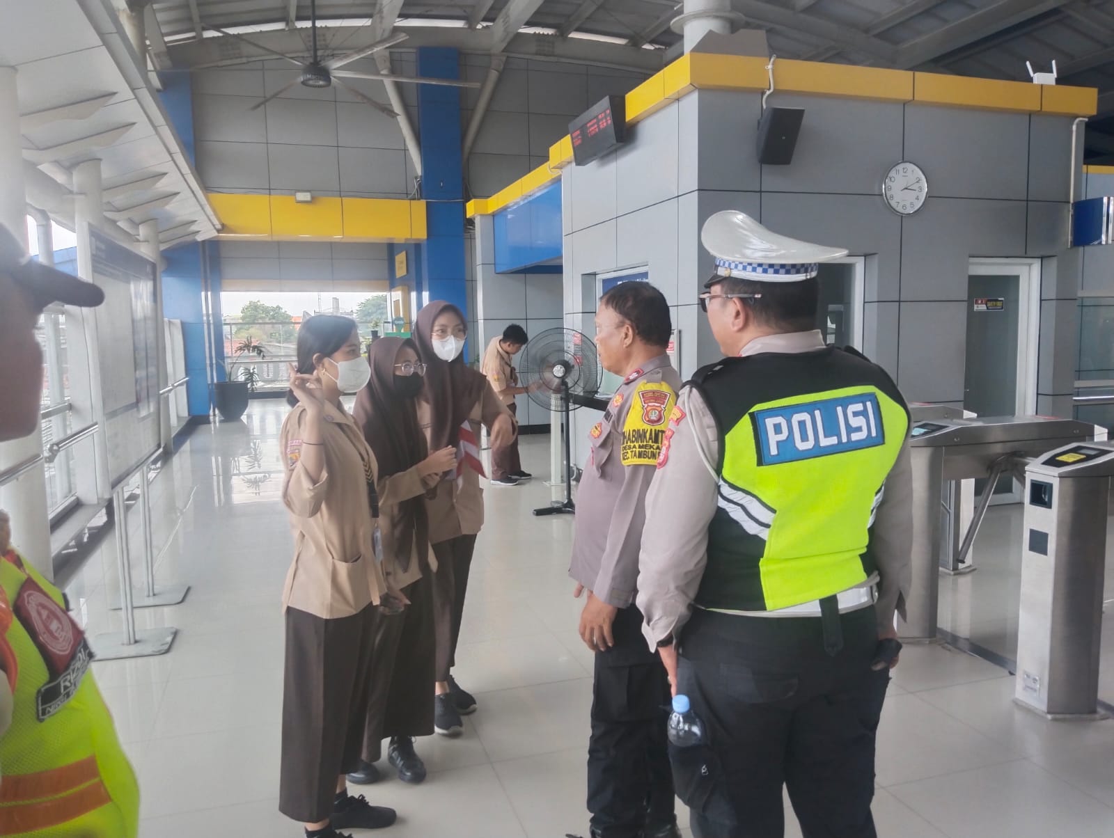 Sejak pagi petugas melaksanakan apel kesiapan dan pengecekan personel sebelum ditempatkan di pintu masuk dan pintu keluar stasiun. Penempatan personel ini bertujuan memastikan mobilitas warga berjalan tertib, sekaligus memberikan imbauan humanis kepada pelajar yang ditemui.