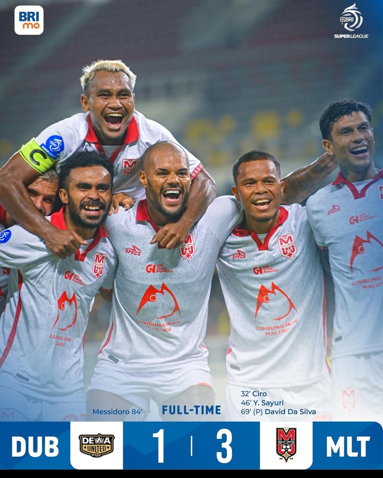 Dewa United akhirnya berhasil mencetak gol hiburan melalui Alexis Messidoro di menit-menit akhir pertandingan. Namun, gol tersebut tidak mampu membendung kemenangan Malut United.
