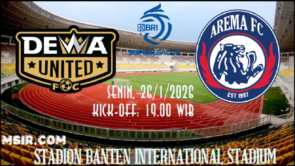 MSIR.COM, Kota Bekasi —Pekan ke-18 lanjutan BRI Super League 2025-2026 akan ditutup dengan duel sengit dua penghuni papan tengah. Dewa United bersiap menjamu Arema FC di Stadion Indomilk Arena, Senin 26/1/2026 Kick-off pukul 19.00 WIB. Laga ini bukan sekadar perebutan tiga poin, melainkan pertarungan harga diri untuk memperbaiki posisi di klasemen sementara.