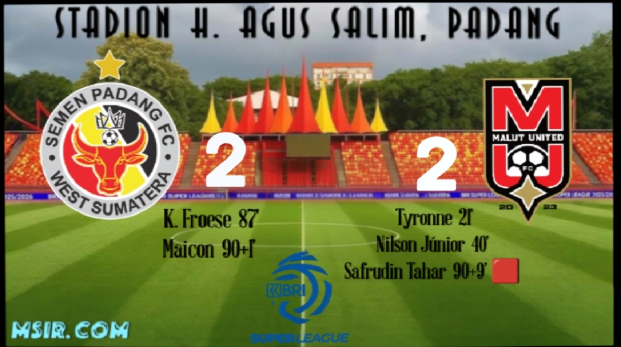 MSIR.COM, Kota Bekasi — Pertandingan lanjutan pekan ke-22 lanjutan BRI Super League 2025-2026 antara Semen Padang vs Malut United berakhir dengan drama luar biasa. Sempat unggul dua gol, Laskar Kie Raha harus puas berbagi angka setelah tuan rumah, Kabau Sirah, melakukan comeback fantastis di menit-menit akhir laga yang digelar di Stadion Haji Agus Salim, Jumat 20/2/2026 Kick-off malam ramadhan pukul 21.00 WIB.