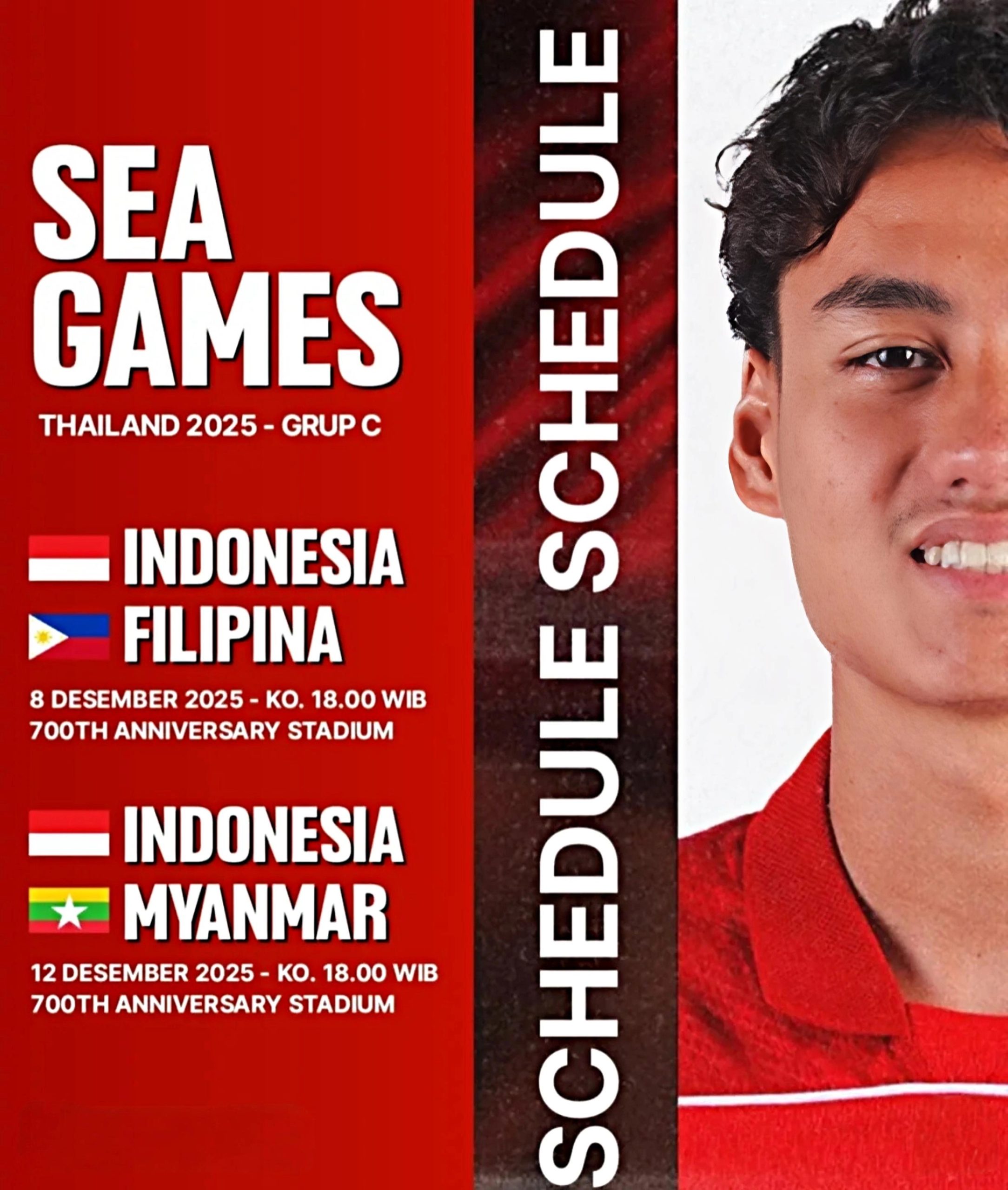 Perjalanan Garuda Muda akan dimulai dengan menghadapi Filipina pada 8 Desember 2025. Setelah jeda empat hari, Timnas akan melakoni laga penentuan melawan Myanmar pada 12 Desember 2025.