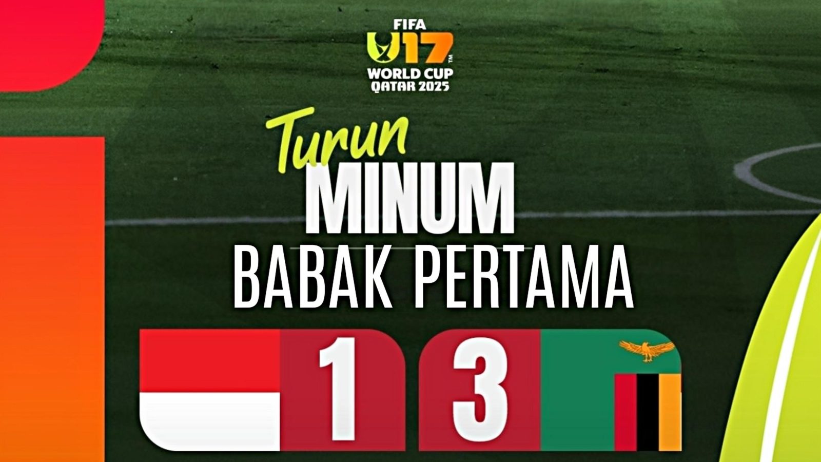 Sayangnya, keunggulan Indonesia tidak bertahan lama. Zambia merespons dengan intensitas permainan yang meningkat drastis dan pressing tinggi yang merepotkan lini tengah Indonesia.