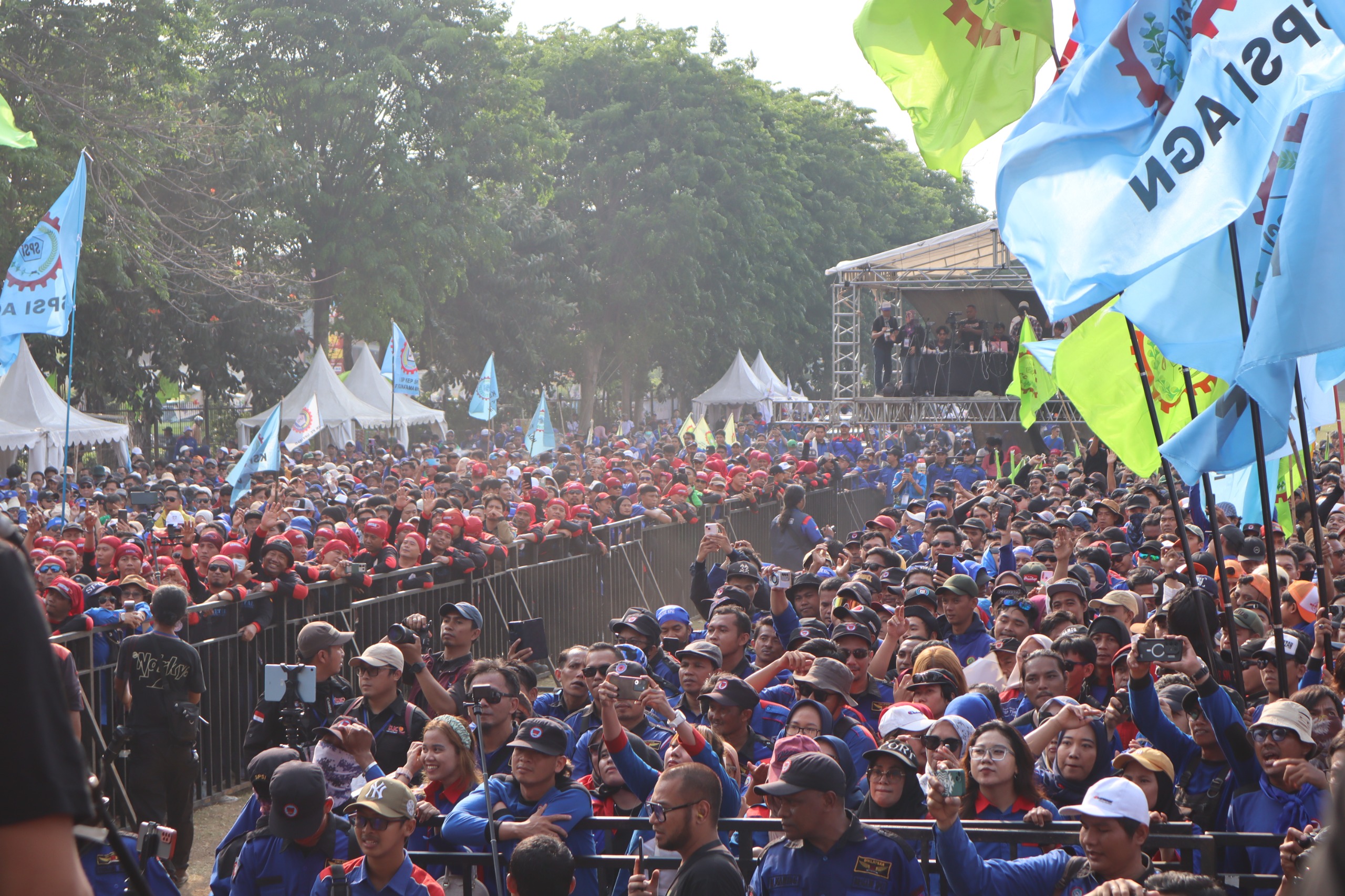 Apel Akbar yang digagas oleh serikat pekerja FSPMI dan KSPSI ini mengangkat tema “Menjaga NKRI dan Mengawal Kebijakan Pemerintah yang Berpihak kepada Buruh Indonesia”.