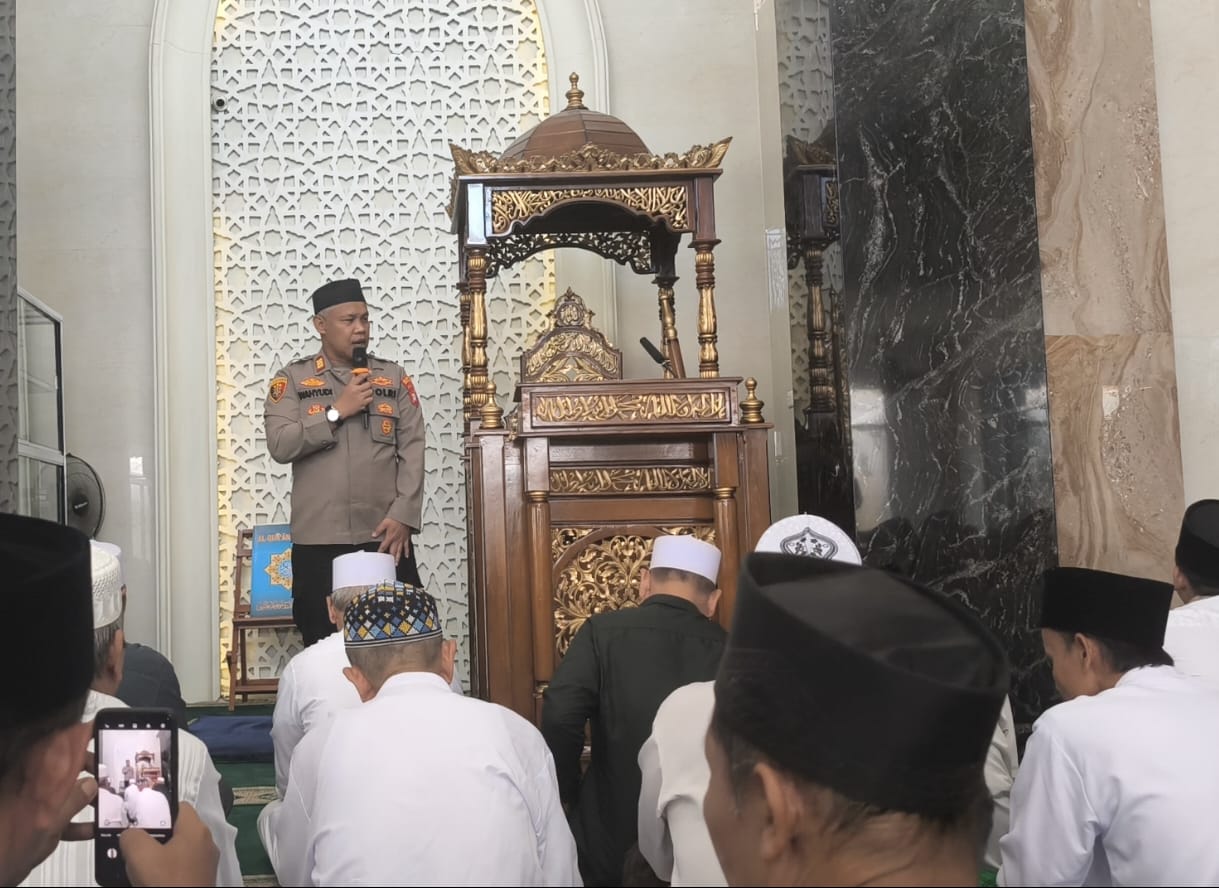 Sebelum pelaksanaan salat, Kapolsek Wahyudi menyampaikan pesan penting kepada para jemaah. Beliau secara tegas mengajak seluruh elemen masyarakat untuk kembali menggiatkan ronda Sistem Keamanan Lingkungan (Siskamling).