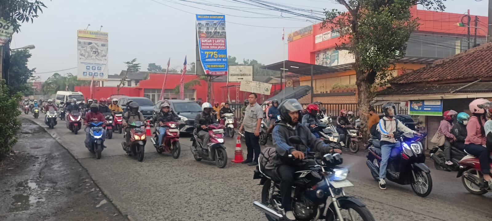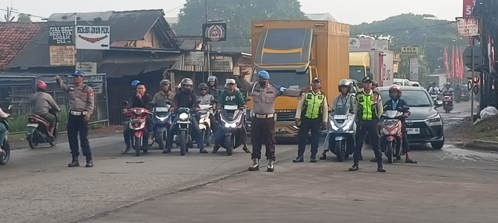 Kapolsek Serang Baru, AKP Hotma P Sitompul, SH, MH, memimpin langsung kegiatan gatur lalin pagi ini.