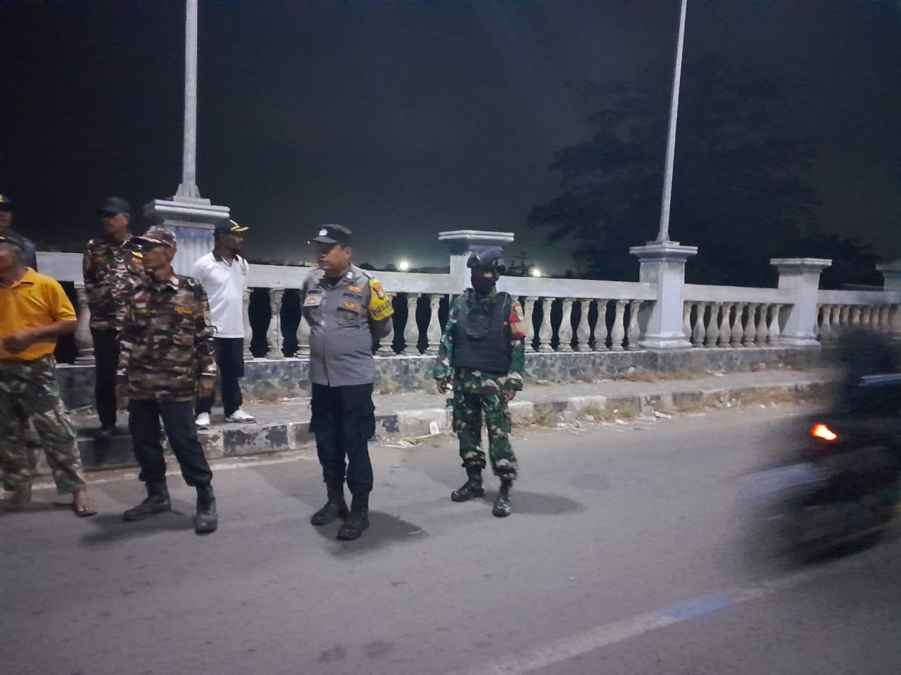 Patroli dipimpin Danramil 11/Pebayuran Kapten Arm Dikin dan Kapolsek Pebayuran AKP Iing Suheri, dengan dukungan personel dari masing-masing instansi.