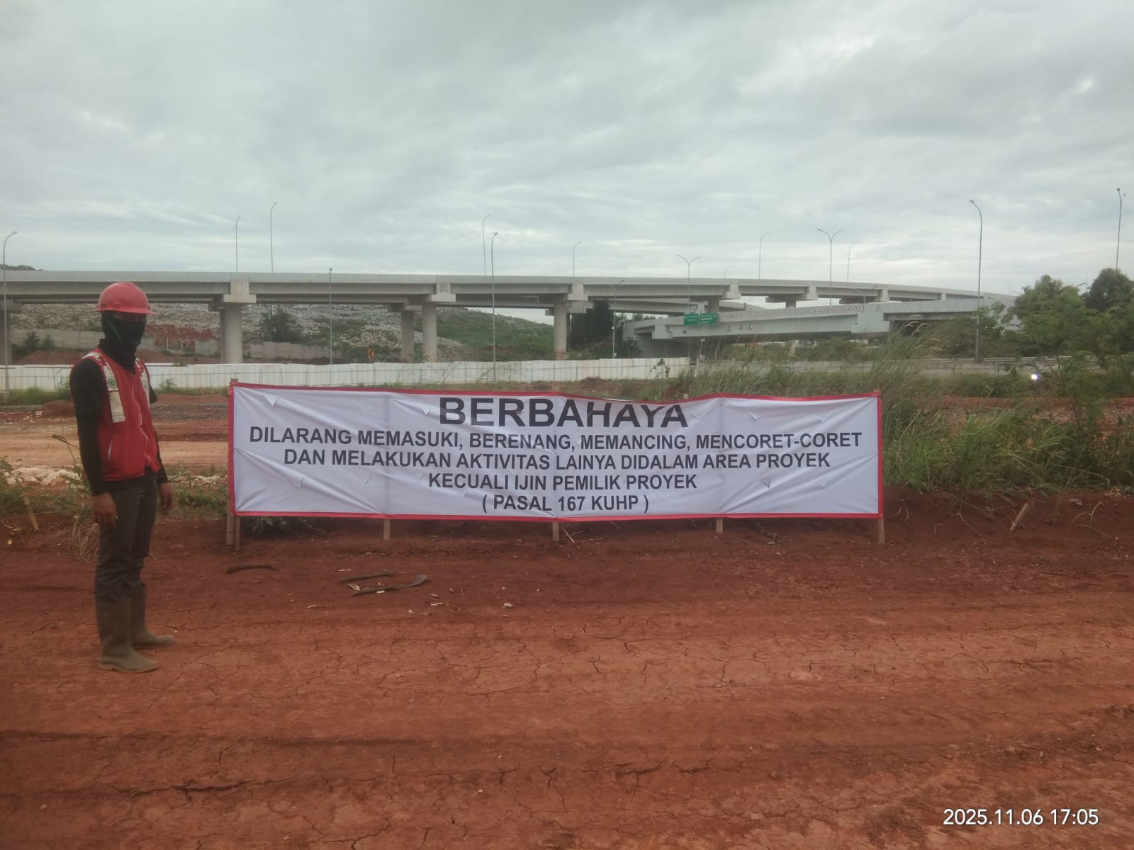 Untuk itu, KSO telah memasang rambu-rambu dan spanduk himbauan keselamatan di sepanjang area proyek, mulai dari area Burangkeng sampai perbatasan Fase 2A dan 2B Jayasampurna. Warga sekitar, terutama anak-anak, dihimbau untuk tidak memasuki area proyek dan mematuhi rambu-rambu keselamatan.