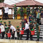 Acara kemudian dilanjutkan dengan penanaman pohon, makan siang bersama prajurit dan warga, serta penebaran benih ikan, yang melambangkan komitmen bersama untuk kemandirian pangan.