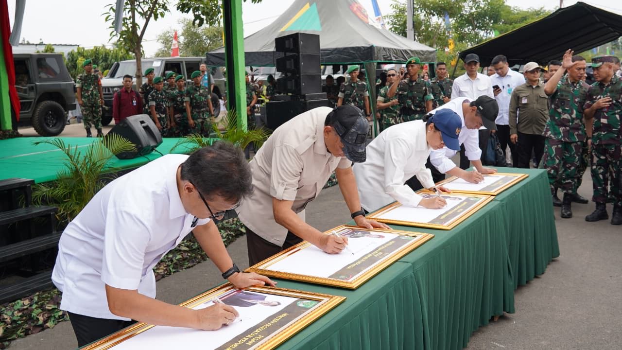 Kabupaten Bekasi, MSIR.COM — Menteri Pertahanan Republik Indonesia, Jenderal TNI (Purn) Dr. Sjafrie Sjamsoeddin, M.B.A., menyoroti pentingnya ketahanan pangan sebagai pilar pertahanan negara. Dalam kunjungan kerjanya ke Markas Batalyon Infanteri Teritorial Pembangunan (Yonif TP) 843 Patriot Yudha Vikasa di Cibitung, Kabupaten Bekasi, pada Rabu kemarin (20/8/2025), Menhan menekankan peran strategis TNI Angkatan Darat dalam program Teritorial Pembangunan (TP). Program ini bertujuan untuk membentuk batalyon militer yang juga berfungsi sebagai lumbung pangan dan penggerak ekonomi daerah.
