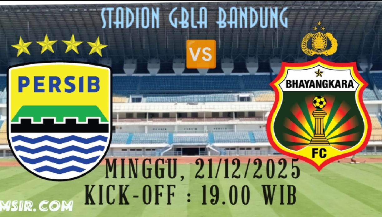 MSIR.COM, Kota Bekasi —Stadion Gelora Bandung Lautan Api (GBLA) akan menjadi saksi duel sengit pekan ke-15 BRI Super League 2025-2026 antara Persib Bandung menjamu Bhayangkara FC, Minggu 21/12/2025 Kick-off pukul 19.00 WIB. Kedua tim menatap laga ini dengan beban serupa untuk menebus hasil negatif di laga sebelumnya kalah dari Malut United skor 2-0.