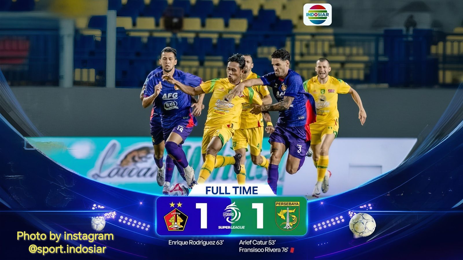 Pada menit ke-63, pemain asal Spanyol, Jose Enrique, muncul sebagai penyelamat tuan rumah. Menerima umpan matang dari Ezra Wallian, Enrique berhasil menyelesaikan peluang dengan baik, membuat skor kembali imbang 1-1.