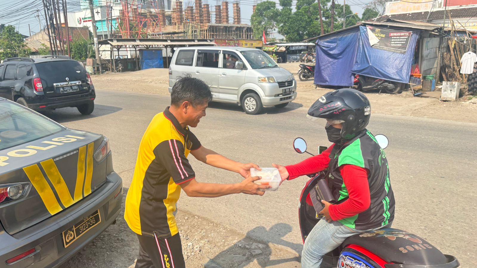 MSIR.COM, Kabupaten Bekasi —Polsek Cibarusah menunjukkan kepedulian terhadap masyarakat dengan menggelar kegiatan Jumat Berkah untuk komunitas ojek online DOTC (Driver Online Transportasi Cibarusah) di Lapangan Banteng, Desa Sindangmulya, Kecamatan Cibarusah, Kabupaten Bekasi. (26/9/2025)