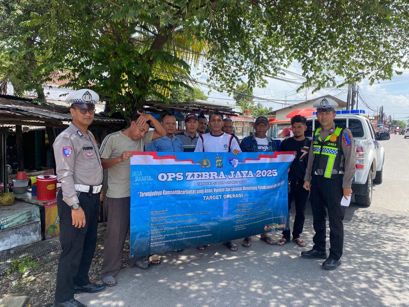 Dalam operasi ini, petugas membentangkan spanduk, membagikan brosur, dan melakukan woro-woro untuk mensosialisasikan Operasi Zebra Jaya 2025.