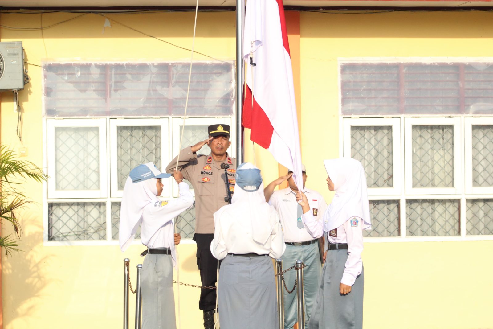 Kanit Binmas Polsek Cikarang Pusat, Ipda Wowo Sundawa, bertindak sebagai Inspektur Upacara di SMKN 1 Cikarang Pusat, sementara Bhabinkamtibmas Aipda Nurfriyono, SH, menjadi pemateri di SMKS Teknologi Pelita Karya.