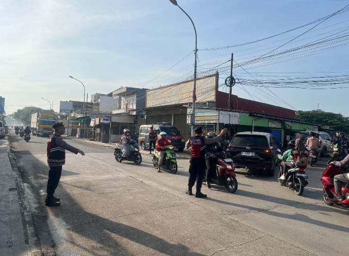 MSIR.COM, Kabupaten Bekasi —Polsek Cikarang Timur melakukan pengaturan lalu lintas pagi hari pada Senin, 1 Desember 2025, pukul 06.00 WIB di beberapa titik rawan macet di wilayahnya.