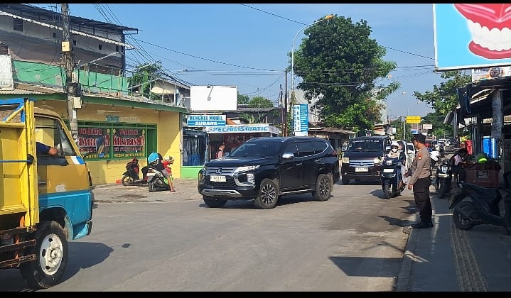 Kapolsek Cikarang Timur, AKP Sugiharto, SH, mengendalikan langsung pelaksanaan pengaturan lalu lintas ini.