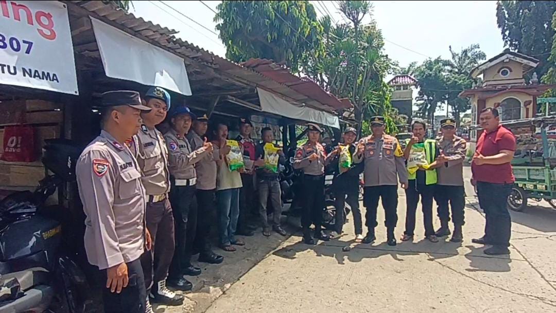 MSIR.COM, Kabupaten Bekasi — Polsek Serang Baru kembali menunjukkan kepeduliannya kepada masyarakat dengan membagikan beras kepada para ojek pangkalan di Gerbang Perumahan Kota Serang Baru (KSB), Jumat (21/11/2025).