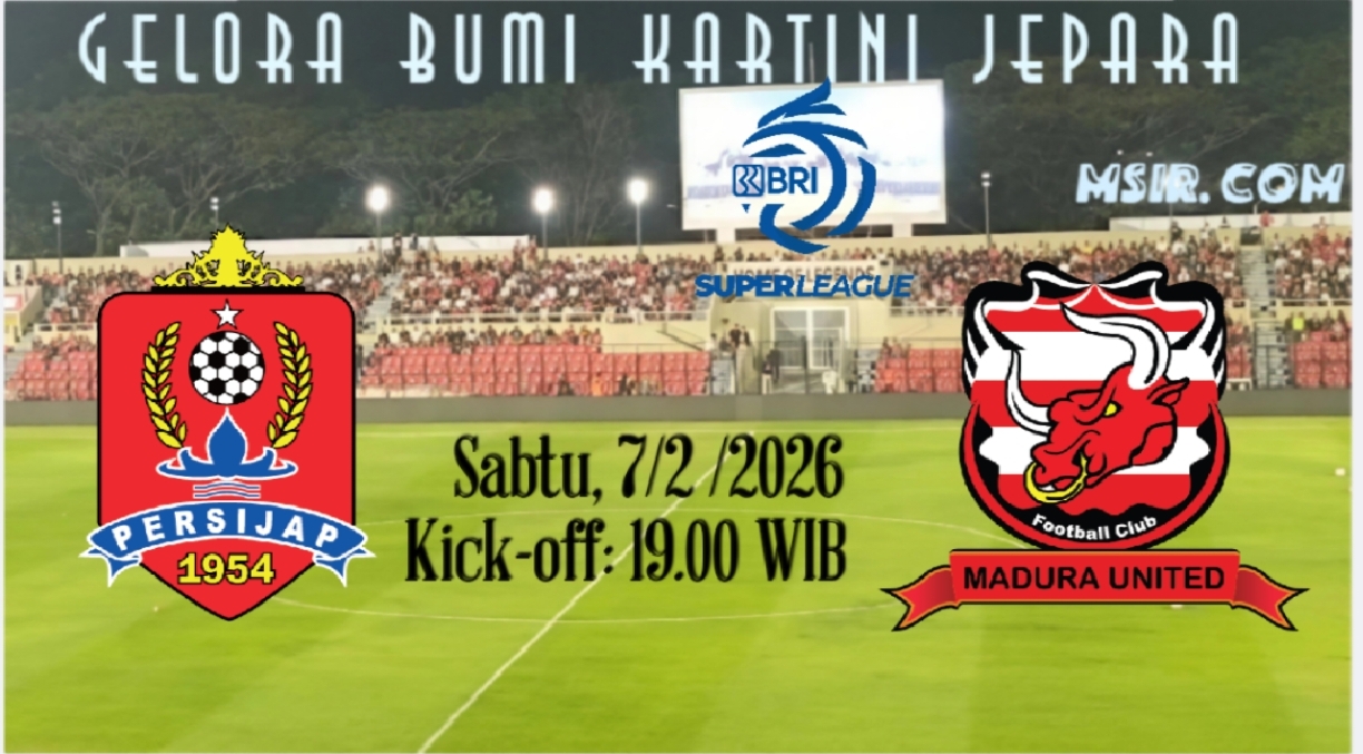 MSIR.COM, Kota Bekasi  Stadion Gelora Bumi Kartini (GBK) bersiap membara! Persijap Jepara akan menjamu Madura United FC dalam laga krusial pekan ke-20 BRI Super League 2025/26, hari ini Sabtu 7/2/2026 Kick-off pukul 19.00 WIB. Ini bukan sekadar laga biasa, melainkan panggung bagi tuan rumah untuk menuntaskan misi balas dendam sekaligus menyambung nafas di kasta tertinggi.