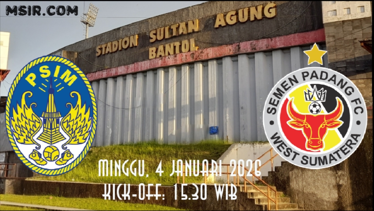MSIR.COM, Kota Bekasi —Mengawali kalender sepak bola tahun 2026, Stadion Sultan Agung (SSA) akan menjadi saksi duel panas pekan ke-16 BRI Super League 2025-2026. PSIM Yogyakarta dijadwalkan menjamu Semen Padang FC pada Minggu, 4/1/2026, Kick-off pukul 19.00 WIB. Laga ini dipastikan akan menyedot perhatian publik sepak bola nasional melalui siaran langsung di Indosiar.