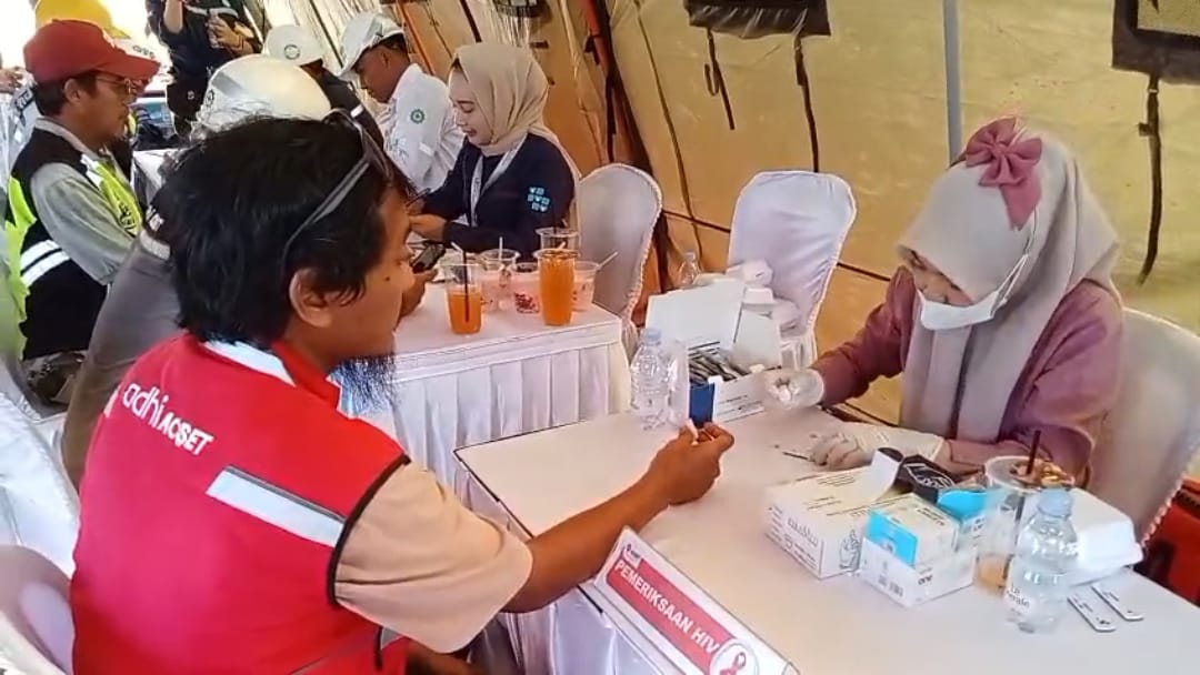 MSIR.COM, Kabupaten Bekasi —PT AdhiAcset KSO mengadakan acara edukasi kesehatan dan pengecekan gratis bagi para pekerja proyek Tol Japeksel 2B di lokasi pembangunan kantor BUJT STA 0+325 Sukasari, Serang Baru, Kabupaten Bekasi, dalam rangka memperingati Hari AIDS Sedunia. Jumat (5/12/2025)