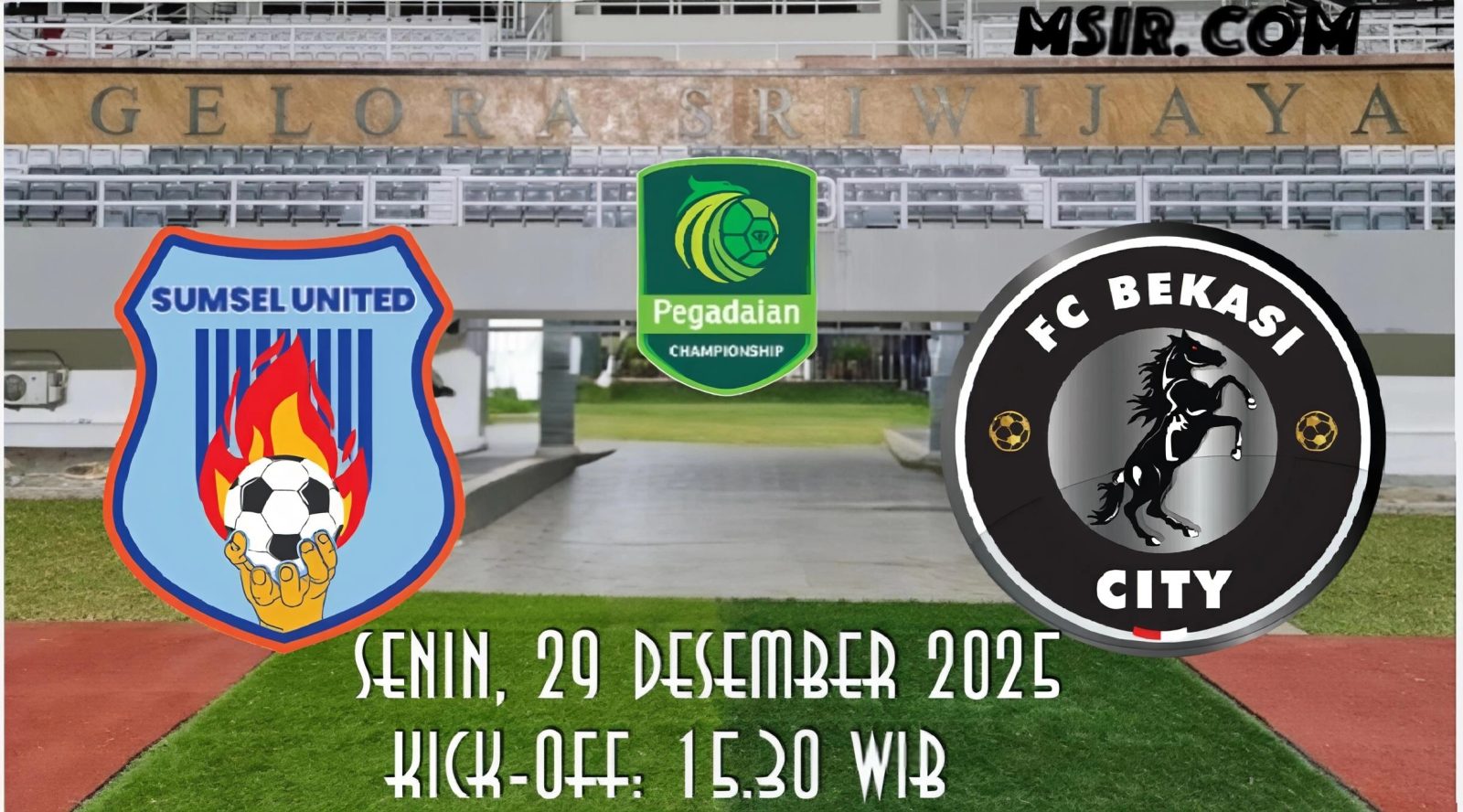 MSIR.COM, Kota Bekasi —Stadion Gelora Sriwijaya Jakabaring (GSJ) akan menjadi saksi perjuangan sengit Sumsel United saat menjamu FC Bekasi City dalam lanjutan pekan ke-13 Pegadaian Championship 2025-2026, Senin 29/12/2025 Kick-off pukul 15.30 WIB duel ini disiarkan langsung oleh televisi nasional SinpoTv.