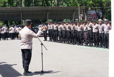 Kapolsek Cikarang Pusat Dampingi Kapolres Metro Bekasi Pimpin Apel Pelayanan Konsolidasi Akbar Serikat Pekerja