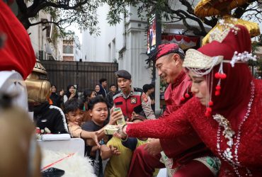 Sumbang Kegembiraan di HUT ke-80 Jabar, Rombongan Kirab Kota Bekasi Bagikan Susu dan Camilan