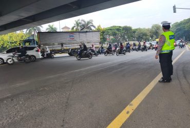 Polsek Cikarang Pusat Atur Arus Lalin di Flyover Deltamas