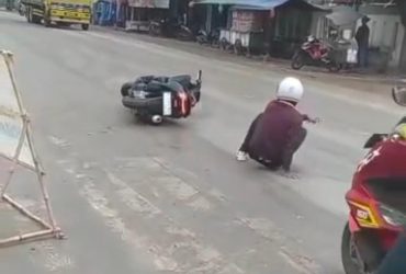 Beredar Video Kecelakaan di Cibarusah, Bekasi: Jalan Licin Sebabkan Pengendara Roda Dua Terjatuh