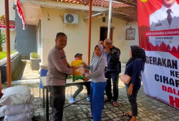 Polsek Cikarang Pusat Hadiri Program Gerakan Pangan Murah di Kantor Kecamatan Cikarang Pusat