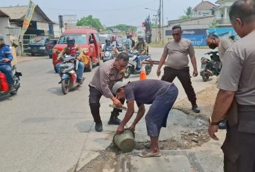 Polsek Serang Baru Polres Metro Bekasi Lakukan Bakti Sosial dengan Mengecor Sisi Badan Jalan