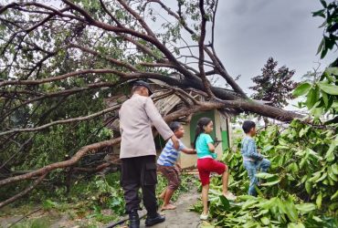 Bhabinkamtibmas Ds. Jatibaru Sigap Tanggapi Dampak Angin Kencang dan Pohon Tumbang